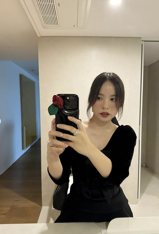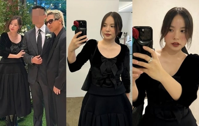 사진 속 민효린은 블랙 컬러의 투피스를 입고 거울 앞에서 셀카를 남기고 있다. 세련된 스타일과 단정한 분위기가 돋보인다. 이 착장은 최근 그녀가 참석한 사진작가 목정욱의 결혼식에서 착용한 하객룩으로 전해졌다.