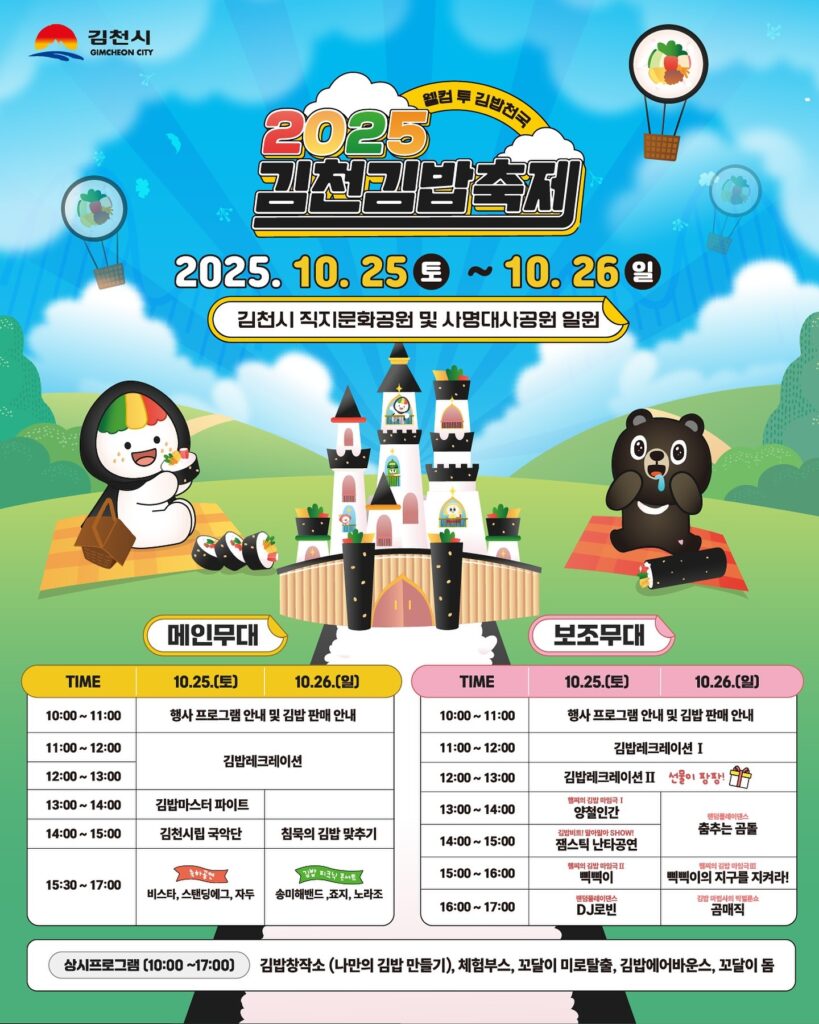 한편 김천시는 25~26일 대항면 사명대사공원 일대에서 ‘제2회 김천김밥축제’를 연다.